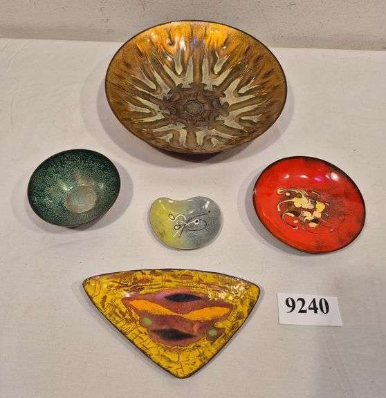 9240 Mid-century enamel decorated bowls, plates, Etc