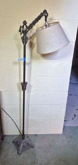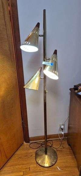 4239 Two brass Bridge floor lamps, one vintage and one contemporary