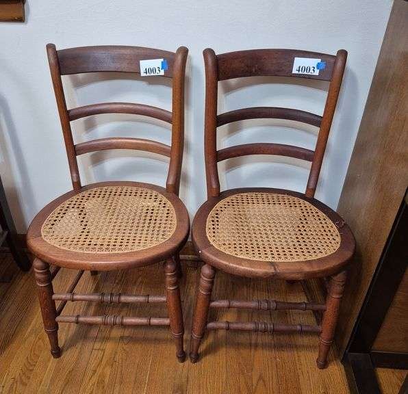 4012 Vintage sewing chair with sewing notions in under-seat storage, antique cane seat chair
