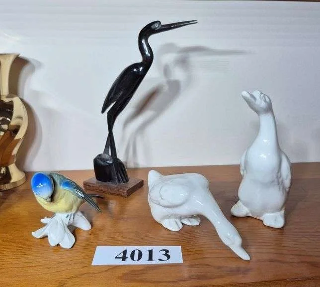 4013 Ceramic, porcelain, and carved horn bird figurines