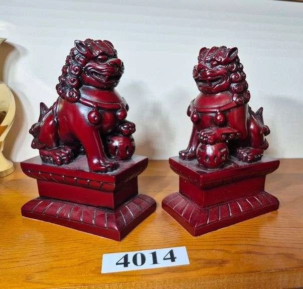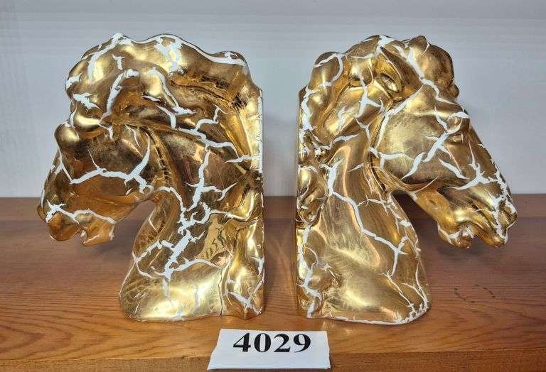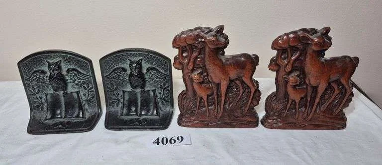 4069 Pair of antique cast iron owl bookends, pair of Syroco Wood deer bookends