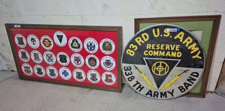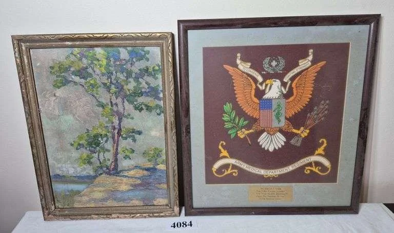 4084 Framed artist signed antique painting on board, Army Medical Department regiment wall hanging