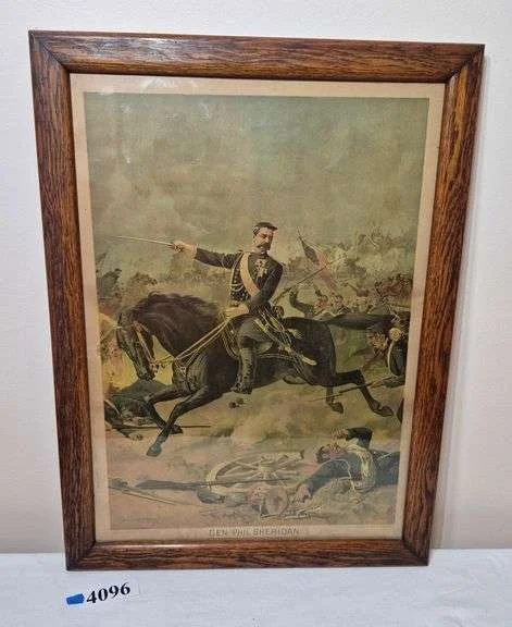 4090 Framed photo of General Sherman with sticker on back from Argus E. Ogbourn of Richmond Indiana...