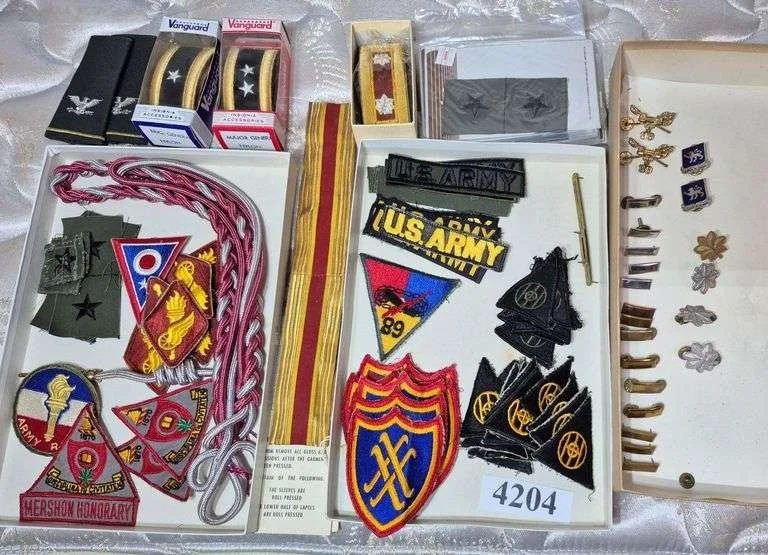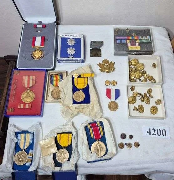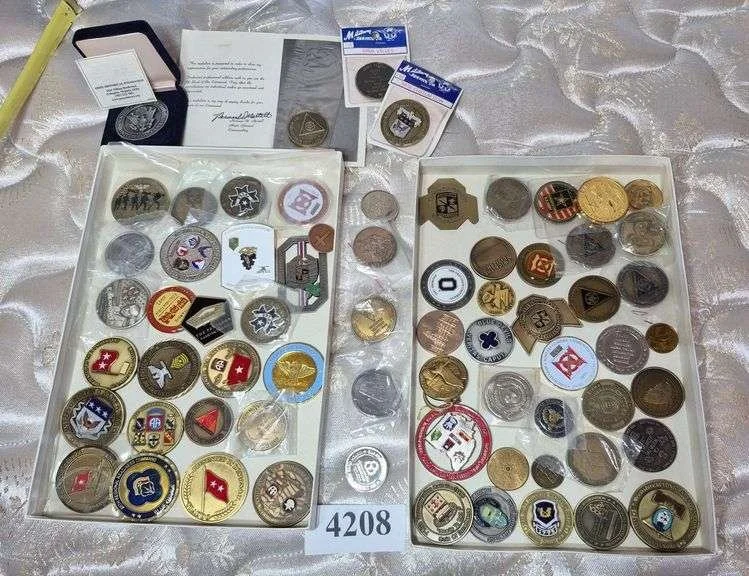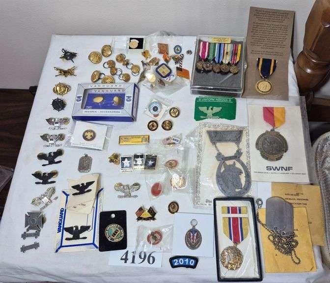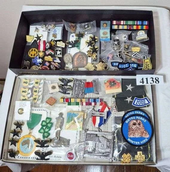 4307 Military Tokens, insignia, pins, Civil War clock, Etc