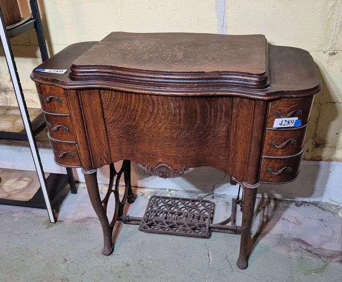 4289 Antique Will C. Free treadle sewing machine in oak case