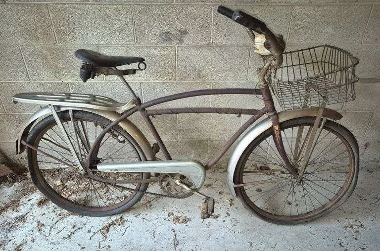 4308 Vintage bicycle with headlight generator and 1949 Columbus license plate