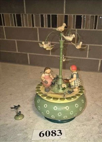 6083 Erzgebirge German Wood mechanical music box, very small wood bird figurine