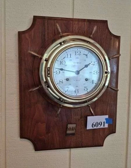 6091 Howard Miller key wind 11 Jewel brass Shipsbell wall clock, working well