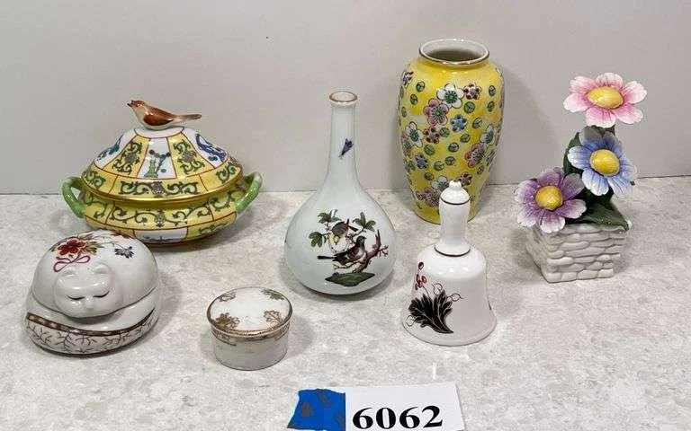 6062 Herend Hungary mini tureen, Elizabeth Arden cat trinket box / candle holder, Coalport Hong Kong...