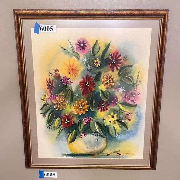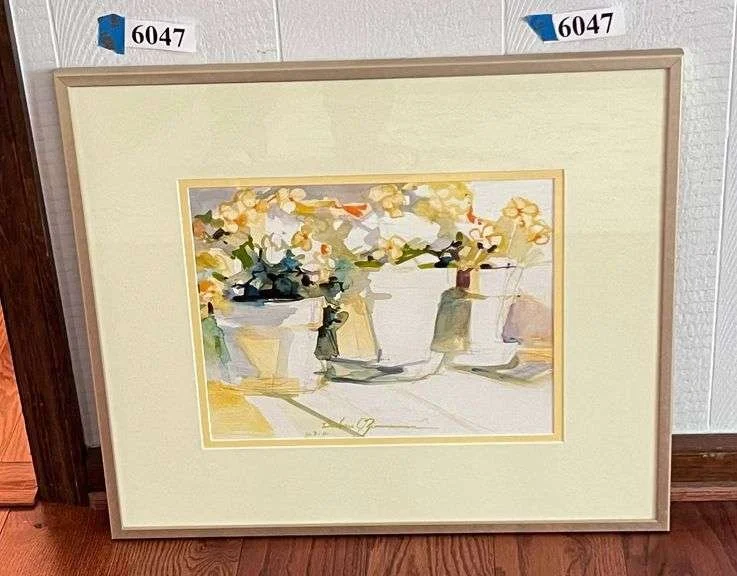 6047 Framed original watercolor painting “Begonias” by Barbara J. Zimmerman