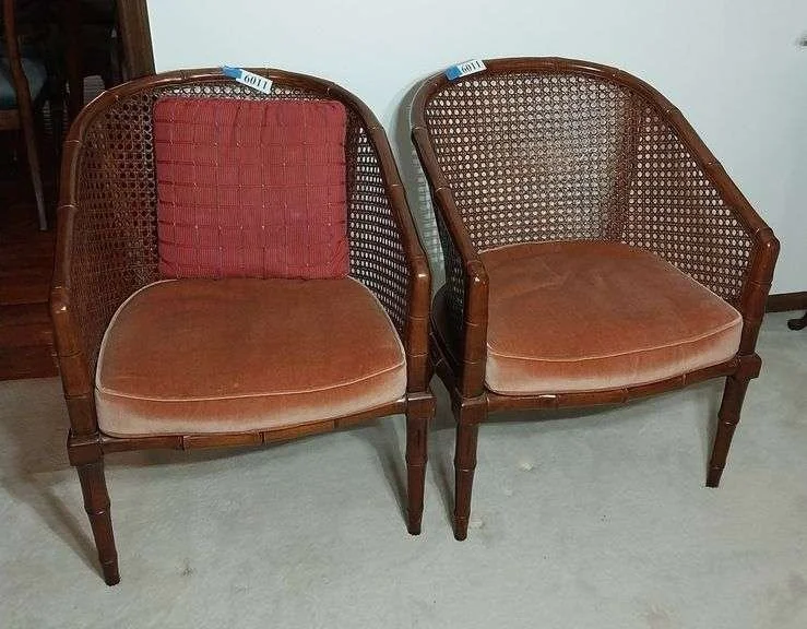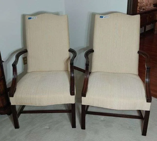 6014 Pair of Hickory Chair cream color and wood frame chairs