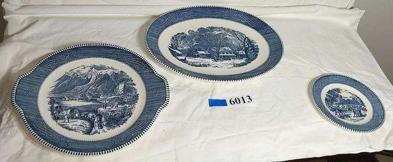6013 Blue transfer platter, dessert plate, Currier and Ives Platter