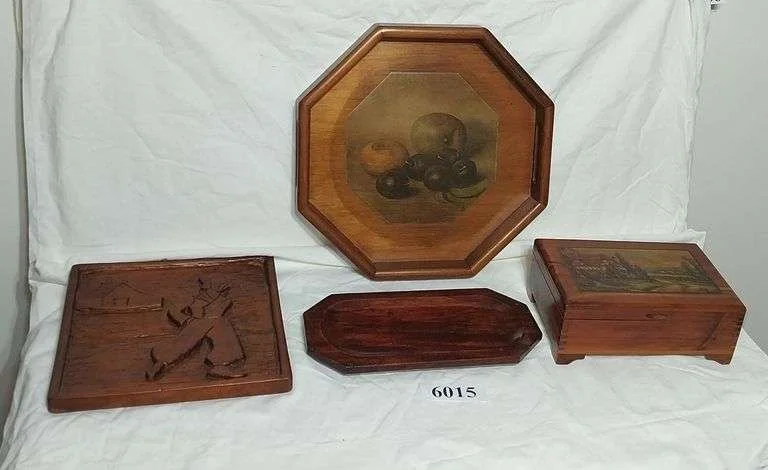 6015 Wood tray with handles, small wood tray, Dutch boy carved wood wall decor, wood memento box