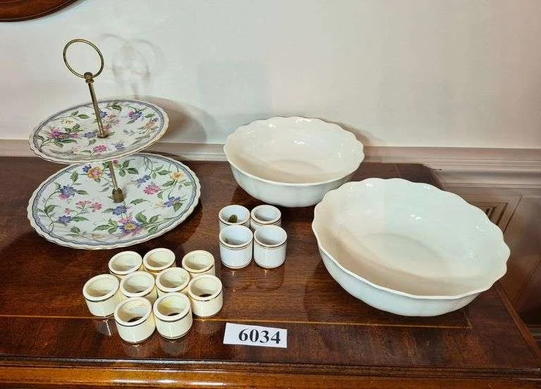 6034 Two-tiered serving plate, two Mikasa bowls, china napkin rings