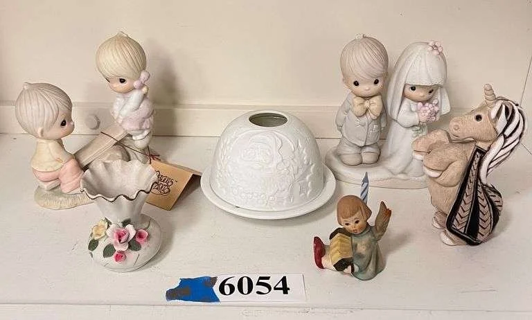 6054 Two Precious Moments figurines, artist signed unicorn figurine, porcelain candle holder, Goebel Hummel......