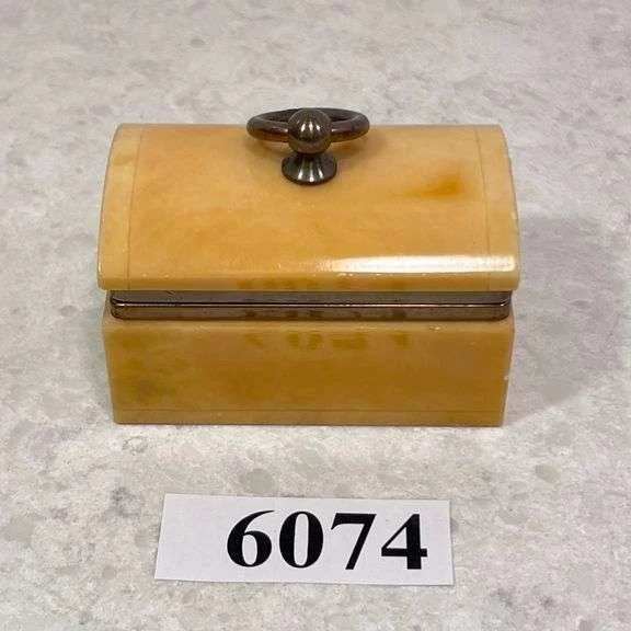6074 Vintage Italian hinged alabaster stone and brass jewelry / trinket box