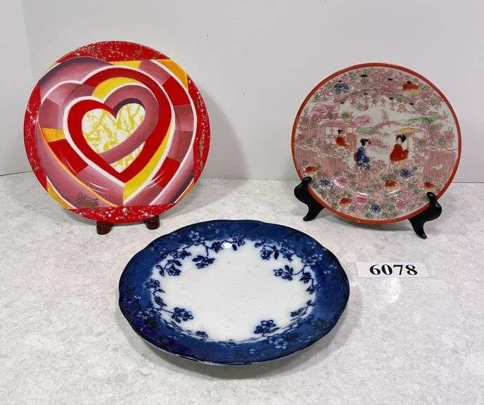 6078 Antique Flow Blue Plate, Potenza Japan collector plate, Kutani Japan hand-painted geisha plate