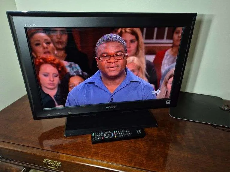 6095 Sony 40 inch TV with remote, manual, and antenna