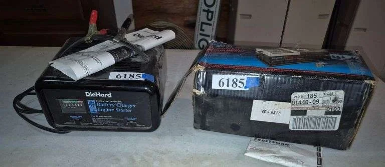 6185 DieHard fully automatic battery charger / engine starter with manual, Sears compact air compressor in box with manual