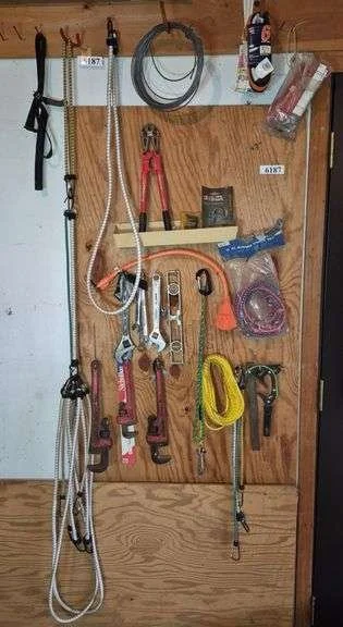 6187 Pipe wrenches, Crescent wrenches, small bolt cutters, extension cords, bungee cords, Etc