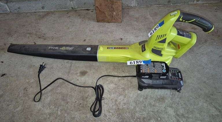 6189 Ryobi hybrid cordless or electric yard blower with 18 volt battery and charger