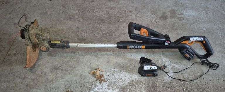 6193 Work 20v cordless weed trimmer with charger and two batteries