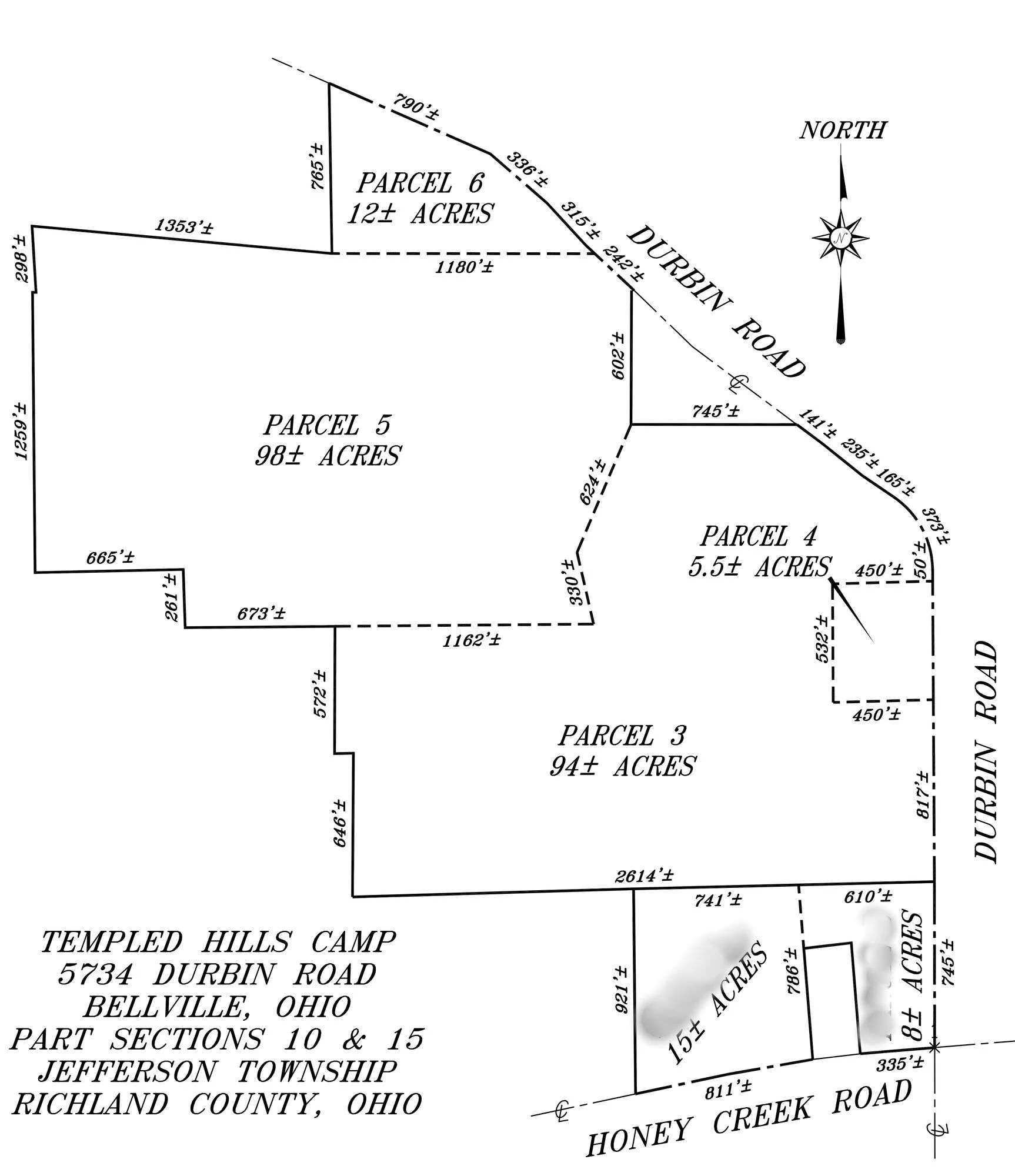We will be offering the property at auction in 4 parcels, in its entirety, or in any combination of the 4 parcels you might desire. Parcels range in size from approx. 5.5 up to approx. 98 acres. One 94 acre parcel (Parcel 3) contains the camp proper with all dormitories, kitchen facilities, meeting rooms, pool, cabins, etc. Parcel 4 contains a freestanding single family home on apprx. 5.5 acres. Parcel 6 is a smaller parcel suitable for a building sites or hobby farm, and Parcel 5 is 98 acres of undeveloped forest and field land for recreation or development. The property will sell in whichever combination of parcels yields the highest bids, provided the total of the bidding exceeds the minimum bid of $1.5 million (which comes to only $7,389 an acre!). See Terms below for more details on bidding.
