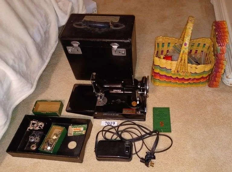 7019 Singer 221-1 featherweight sewing machine in case with accessories. Working well.