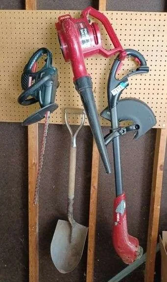 7171 Toro electric weed trimmer, blower, Craftsman hedge trimmer, shovel