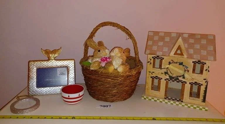 7007 Decorative dollhouse, Bunny basket, picture frames, Bowl