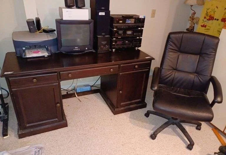 7140 Broyhill office desk, matching lighted hutch top, & office chair