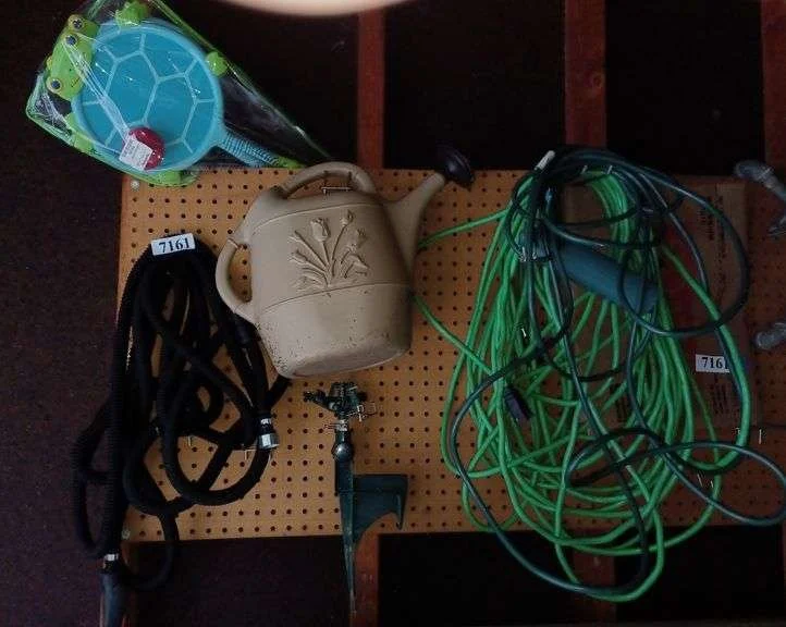 7161 Extension cords, flexible garden hose with nozzle, sprinklers, watering can, etc.