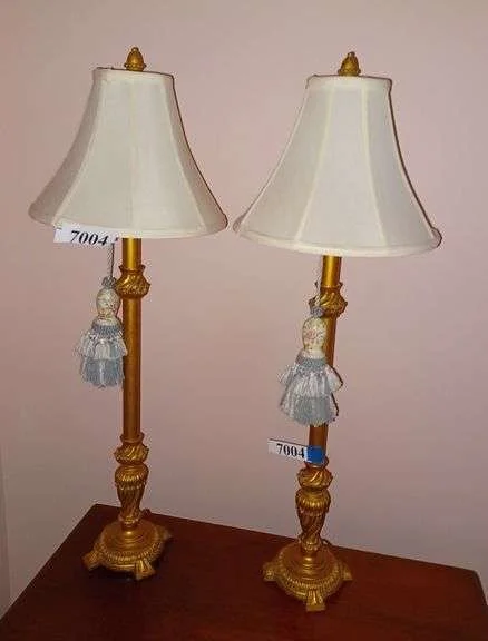 7002 Brass candle lamp, small decorative chairs, bunnies.