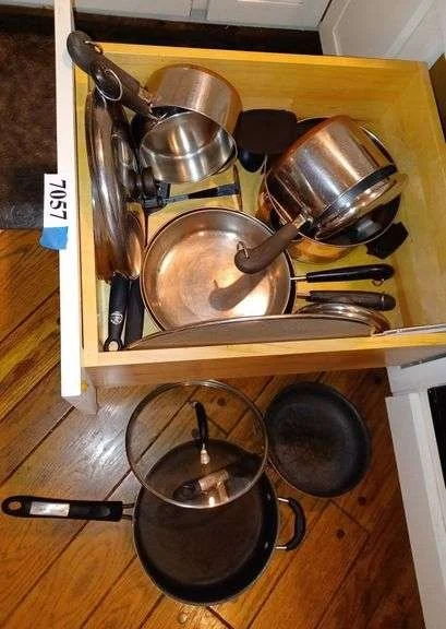 7057 Pots and pans including Revere Ware, Cuisinart, Etc