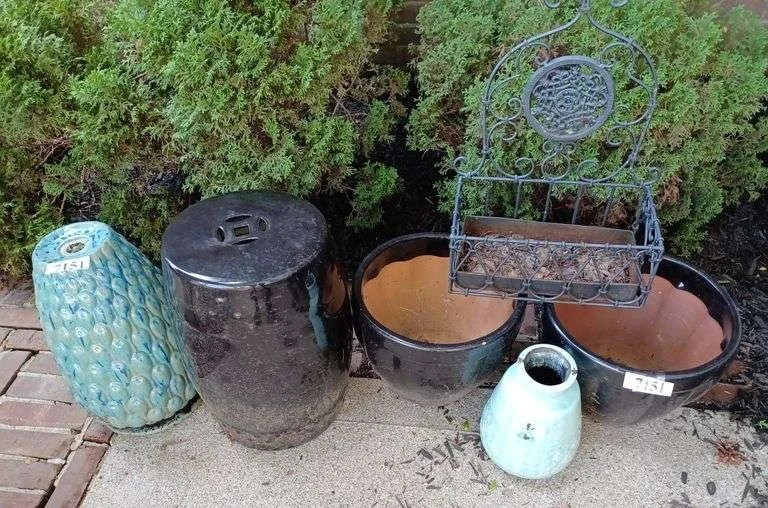 7151 Planters, Garden seat, hanging metal planter, ceramic fountain