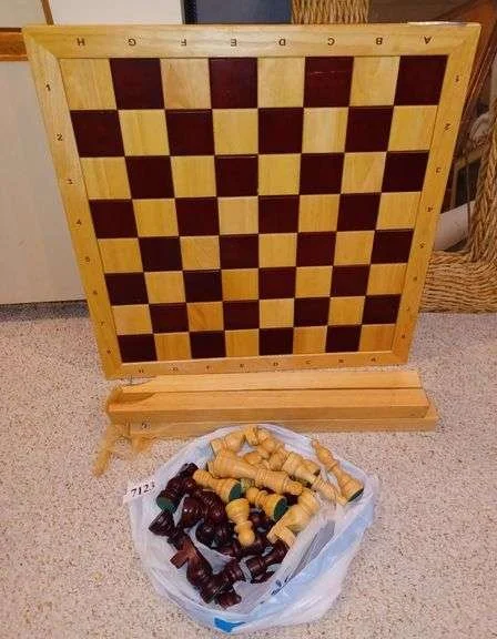7123 Wood chess table with detachable legs, with wood playing pieces