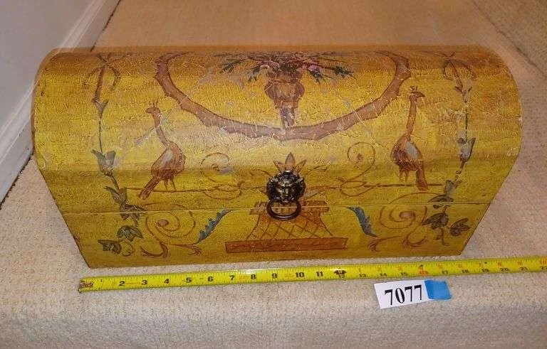 7077 Decorative Dome top box with Lion Head handle, full of potpourri