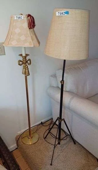 7102 Brass floor lamp, adjustable height tripod floor lamp