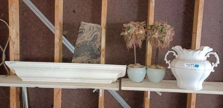7164 Vases, pictures, metal hangers, automotive supplies, Etc
