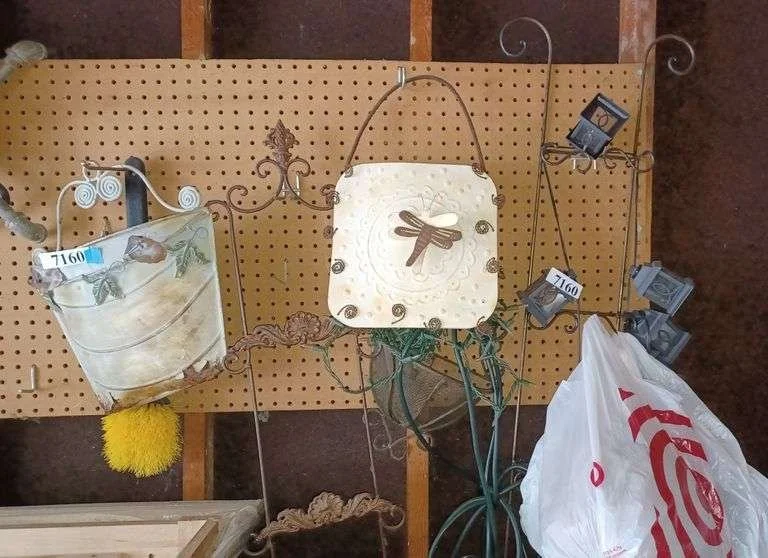 7160 Metal wall hangings, wall plate racks, hanging lantern lights, Etc