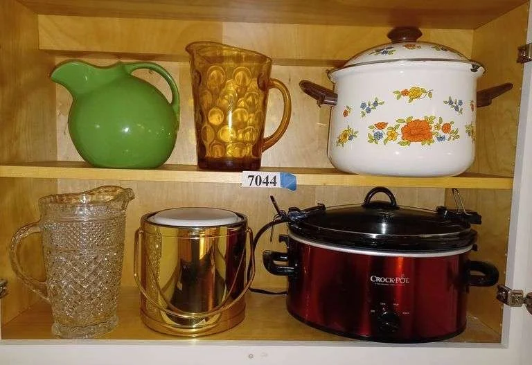 7124 Electric skillet, serving pieces, kitchen utensils, Etc.