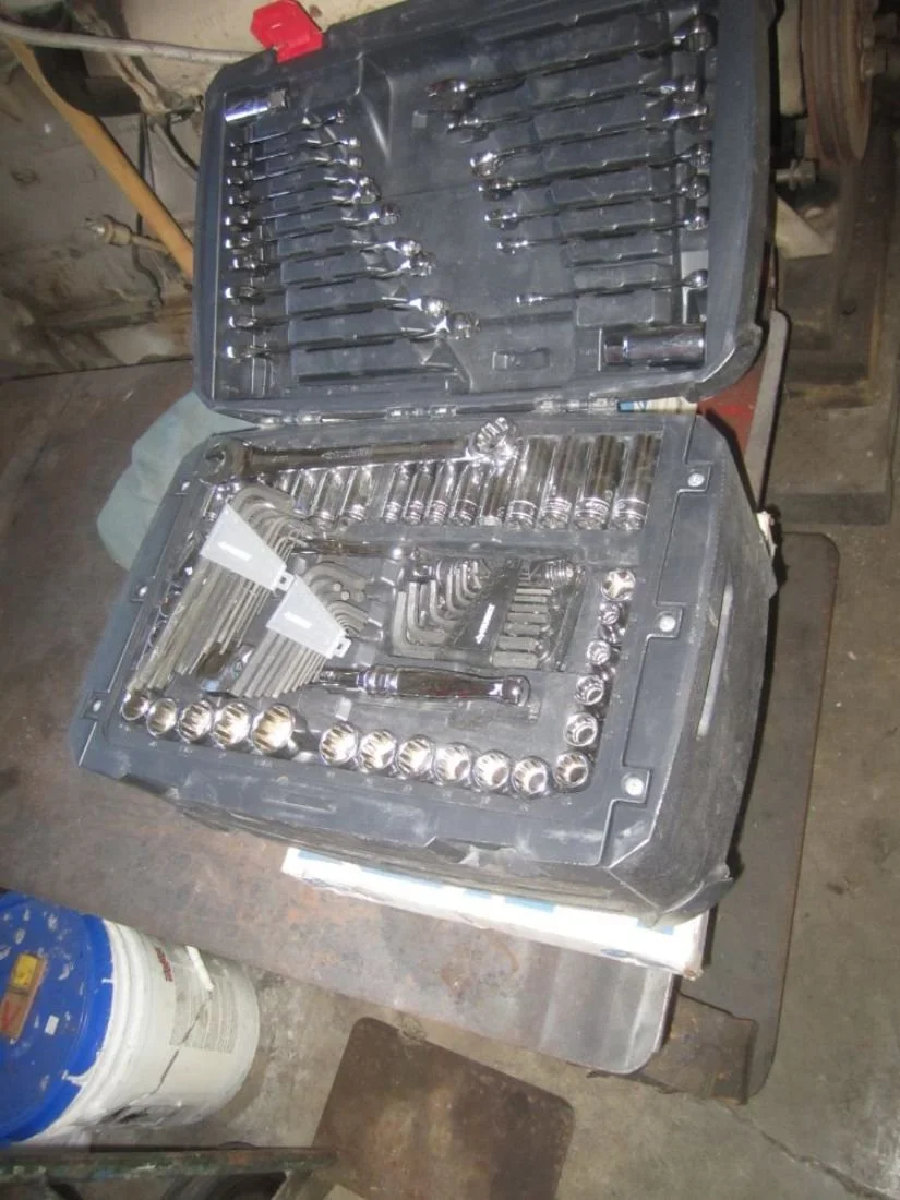 Tools and related including Ammco 3000 brake drum lathe with many accessories including new titanium bits; John Bean Roto-Truer rotor lathe with many accessories including new titanium bits; Husky 80 gal. air compressor; Lincoln stick welder; Pressure washers; US General rolling tool box; Older Mac tool box; Air tools; Air hose; Pipe wrenches; Bench vise; Drill press; Craftsman cordless tool set; Power hand tools; Ratchets & sockets; Hand tools; Bench grinders; Pumps; Heavy duty semi truck floor jack; Several other floor jacks; Cherry picker engine hoist; Transmission jack; Bottle jacks; Jack stands; Work tables; Welding tables; Anvil; Lots of hardware, hardware organizers, bins, etc.; Shelving; Spud bar; Push lawn mower; Weed trimmer; Yard tools; Pole saw; Stihl MS 180 C chain saw; Hose reel; Yard carts; Back-pack sprayer; Several rolling metal work tables/stands; Plastic saw horses; Drums & drum carts; Several ladders; Tow bar;
