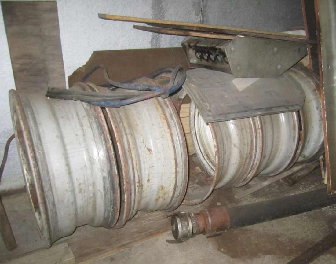 (2) small cam Cummins 400 diesel engines; (2) RTO Road Ranger 15 speed transmissions; Several tubeless 11R22.5 Dayton wheels & tires; Dayton wheel spacers; 40 gal. alum. fuel tank; Bumpers; Fender brackets; Heated mirror; (2) new in box 10” truck mufflers; Pinto engine & transmission; (4) 16.5 wheels & tires; (2) Ford Cobra wheels & tires;