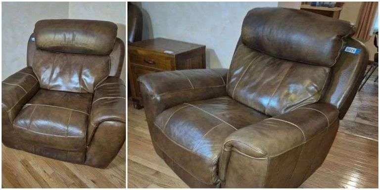 6018 Pair of Highpoint Furn. brown leather ? power recliners with power adjustable headrests and Lumbar s