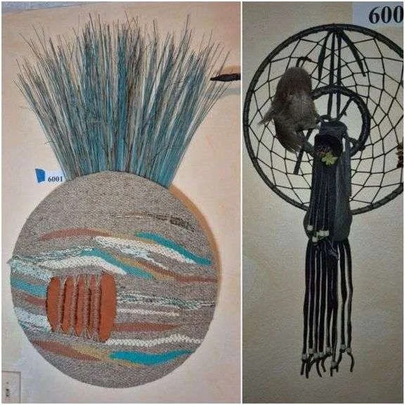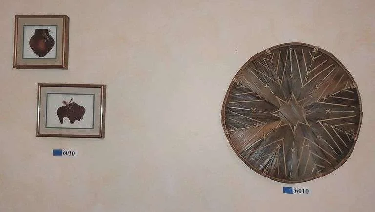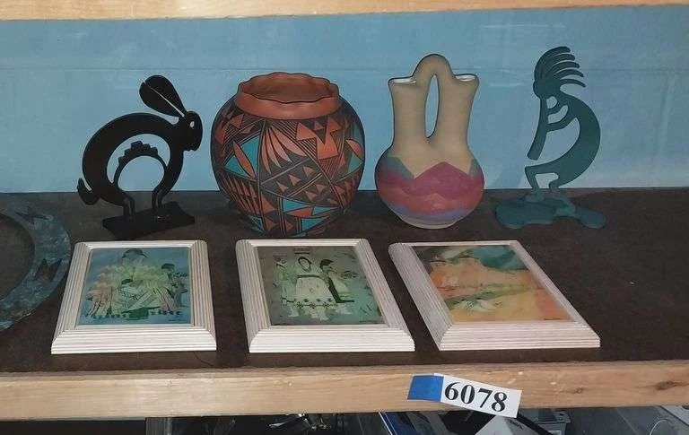 6010 Southwest wall hanging basket, 2 framed copper artworks