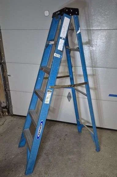 6189 Aluminum step ladder, half of an aluminum extension ladder