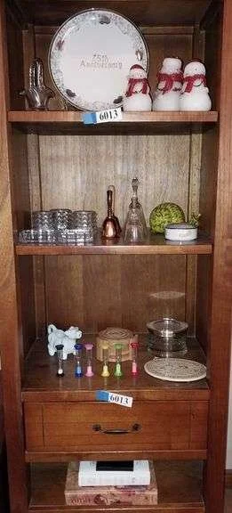 6200 Oval mirror, what not shelf, live laugh love battery wall clock, photo frames, flatware chest
