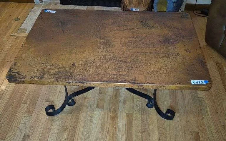 6015 Coffee table with hammered copper covered top and wrought iron base