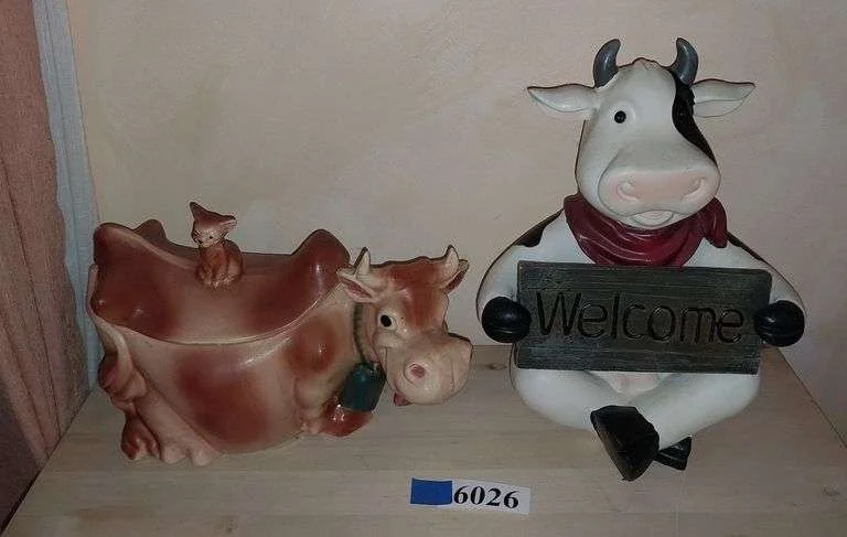 6026 Cow ceramic cookie jar, resin cow with welcome sign