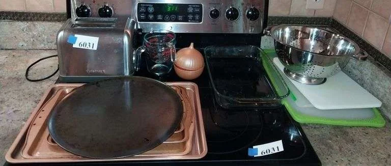 6031 Cuisinart toaster, baking sheets, pizza pan, colander, measuring cups, cutting boards, Etc